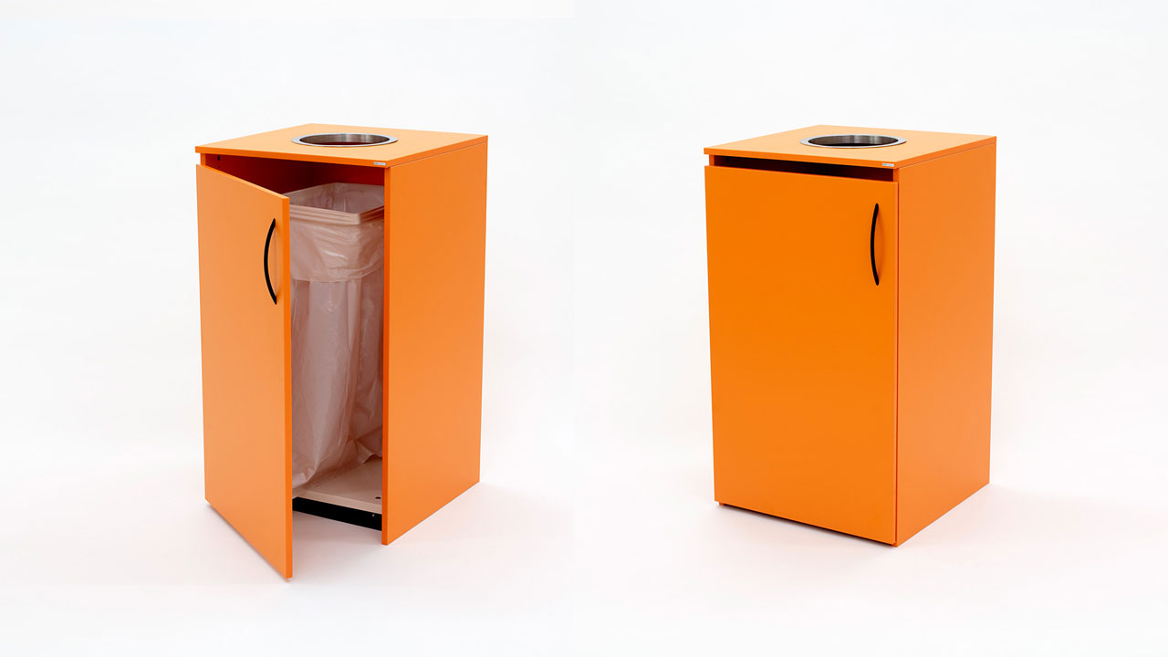 BESKRIVNING: Medium med toppmatning är utrustad med ett som hål som passar utmärkt för ett kontorskök för att slänga hushållsavfall samt brännbart.