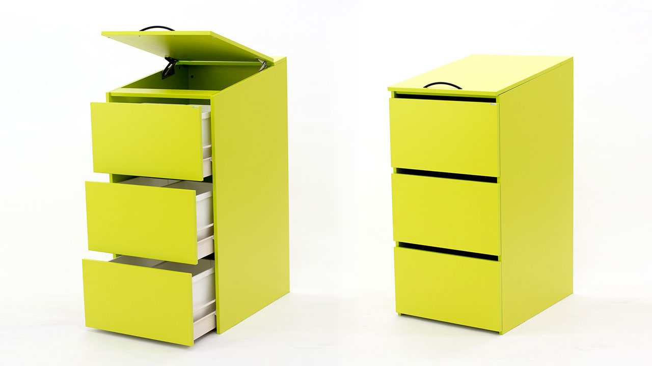 BESKRIVNING: XLarge 3 är en modul med tre lådor som kan inredas efter de behov man har för sin källsortering. Med två mindre behållare i varje låda. Passar utmärkt för sortering av plastförpackningar, burkar, batterier o dyl.